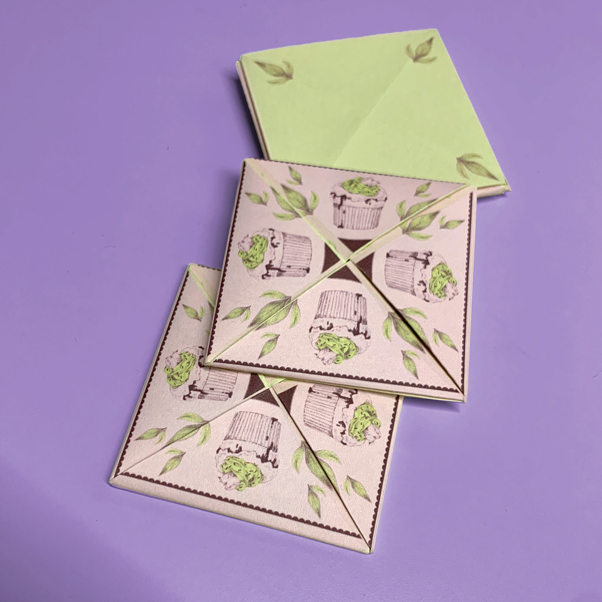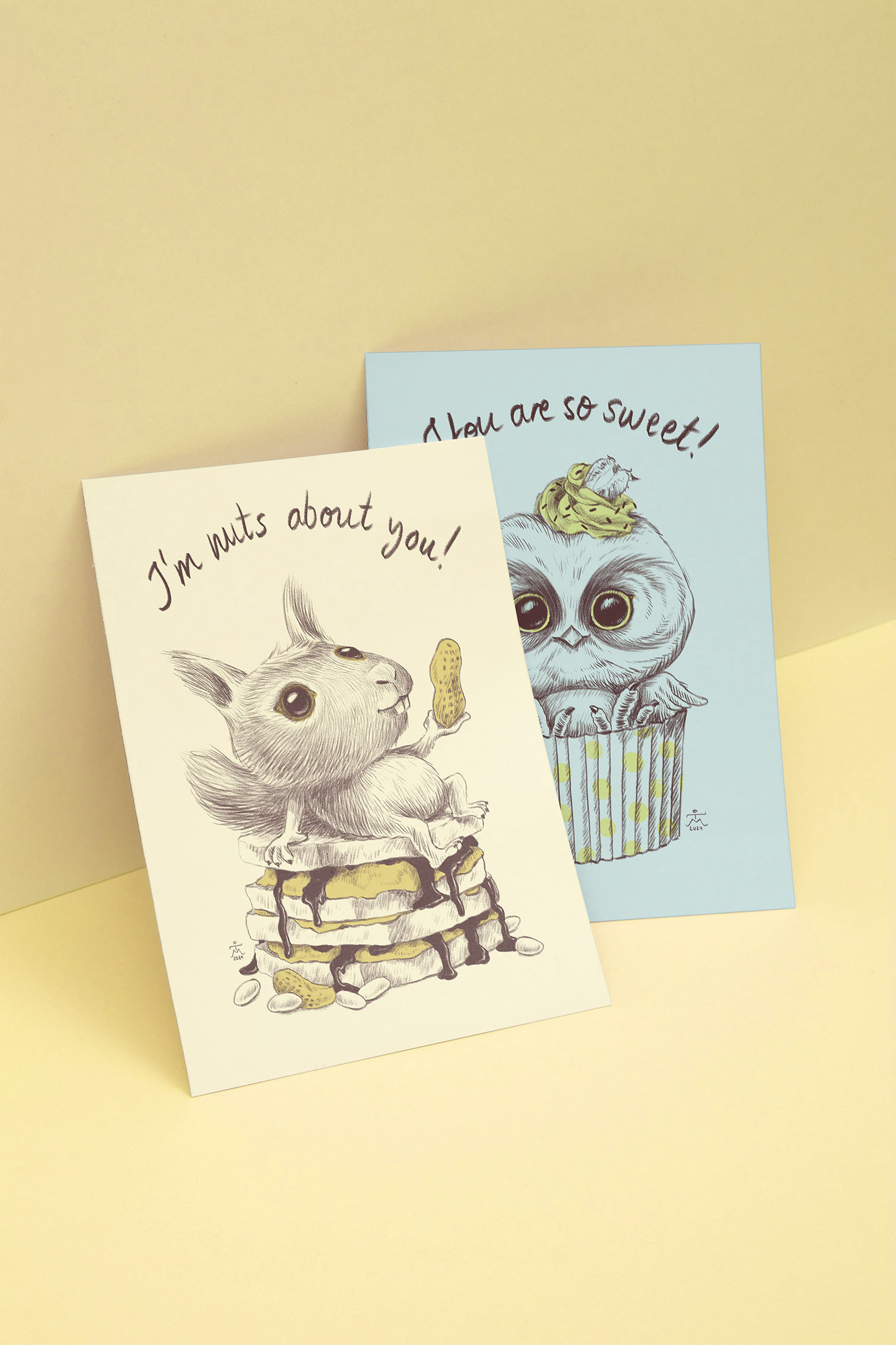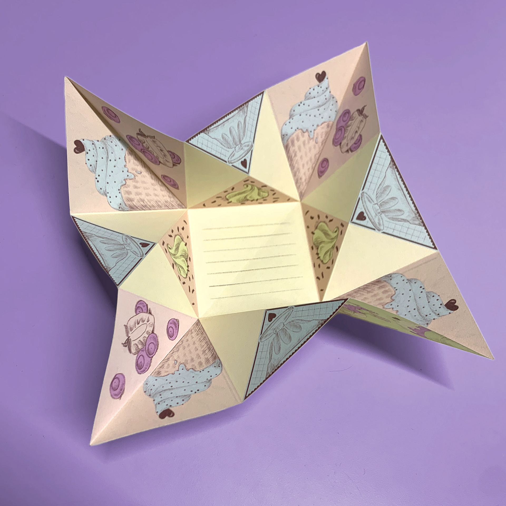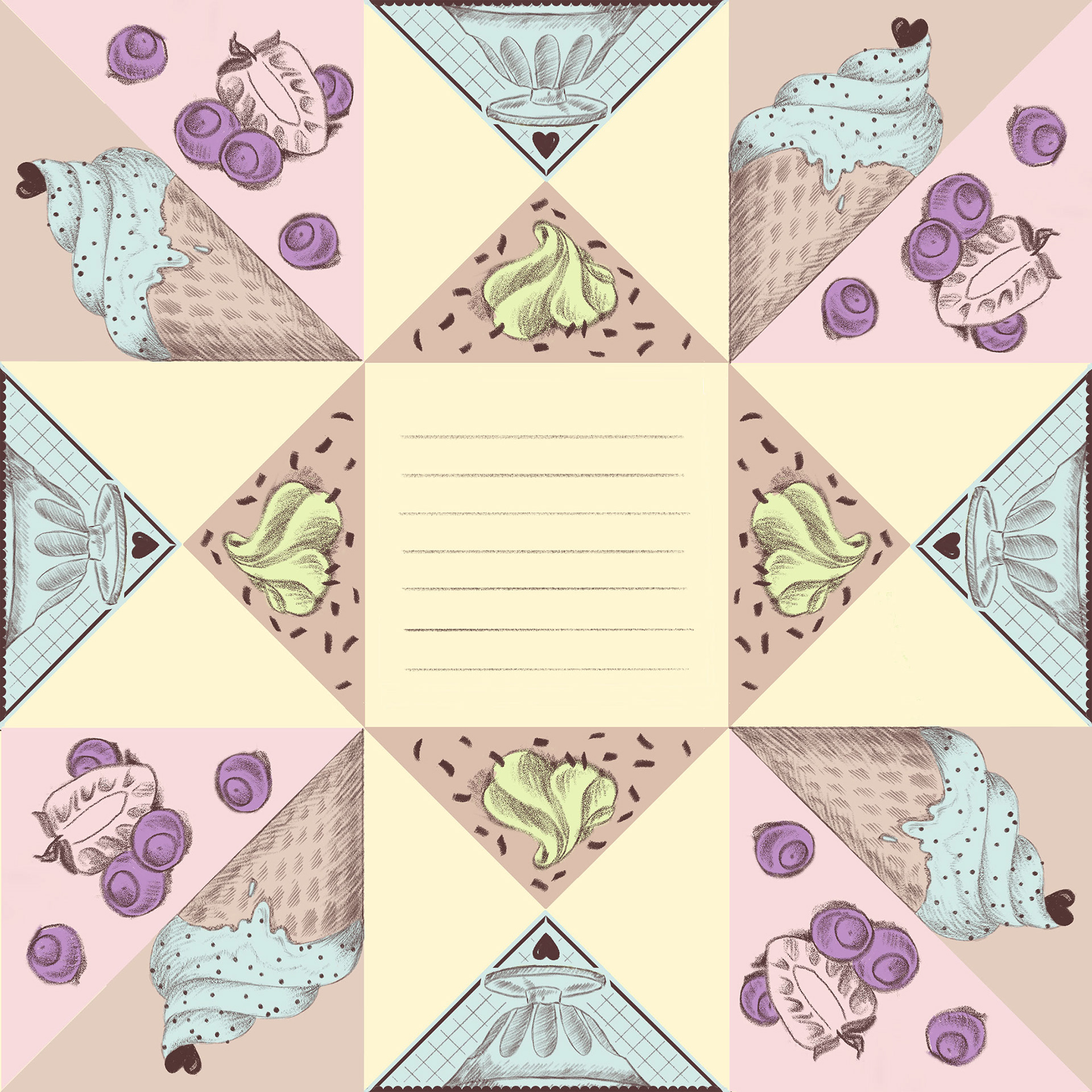 Sugar-coated illustrations for Valentine´s Day cards, notebooks, and origami letters, digital illustration, 2024.